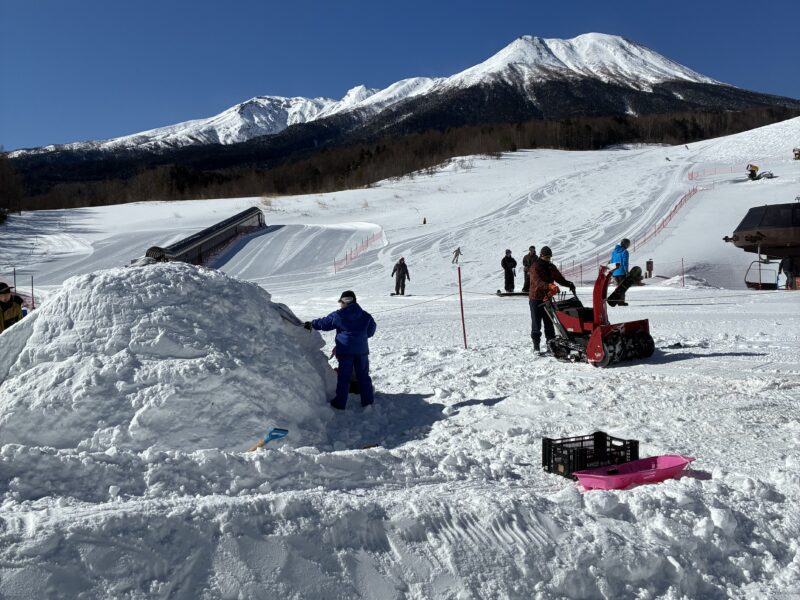 今週末2月7日は開田高原マイアスキー場でかまくら祭りがあります。そのかまくらを作りに行ってきました。晴天、無風、気温高めで作業しやすい陽気でした。地元小学生も加わって大人数でかまくらやら滑り台やらモア …