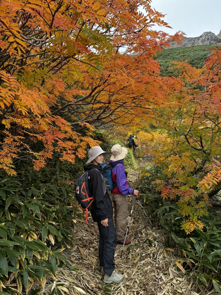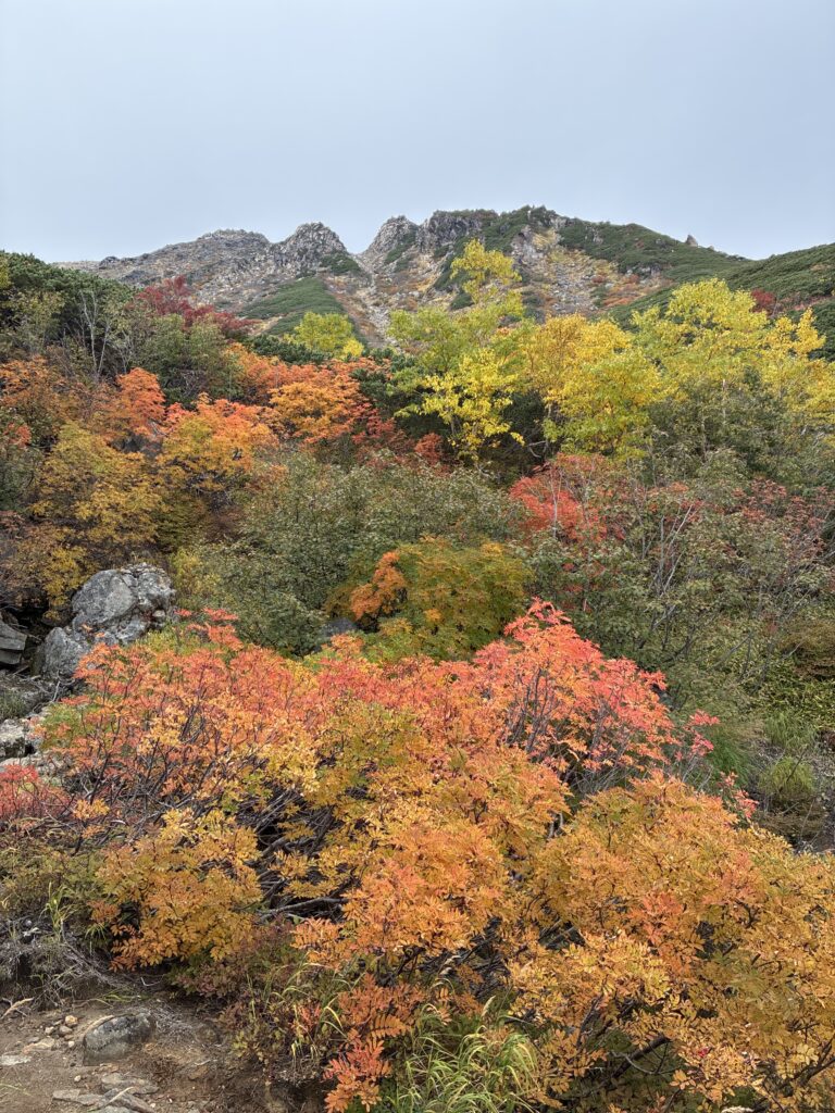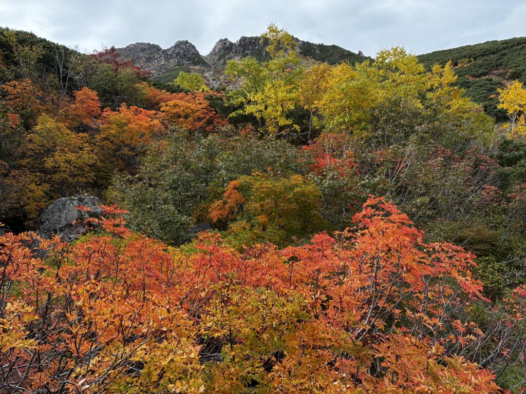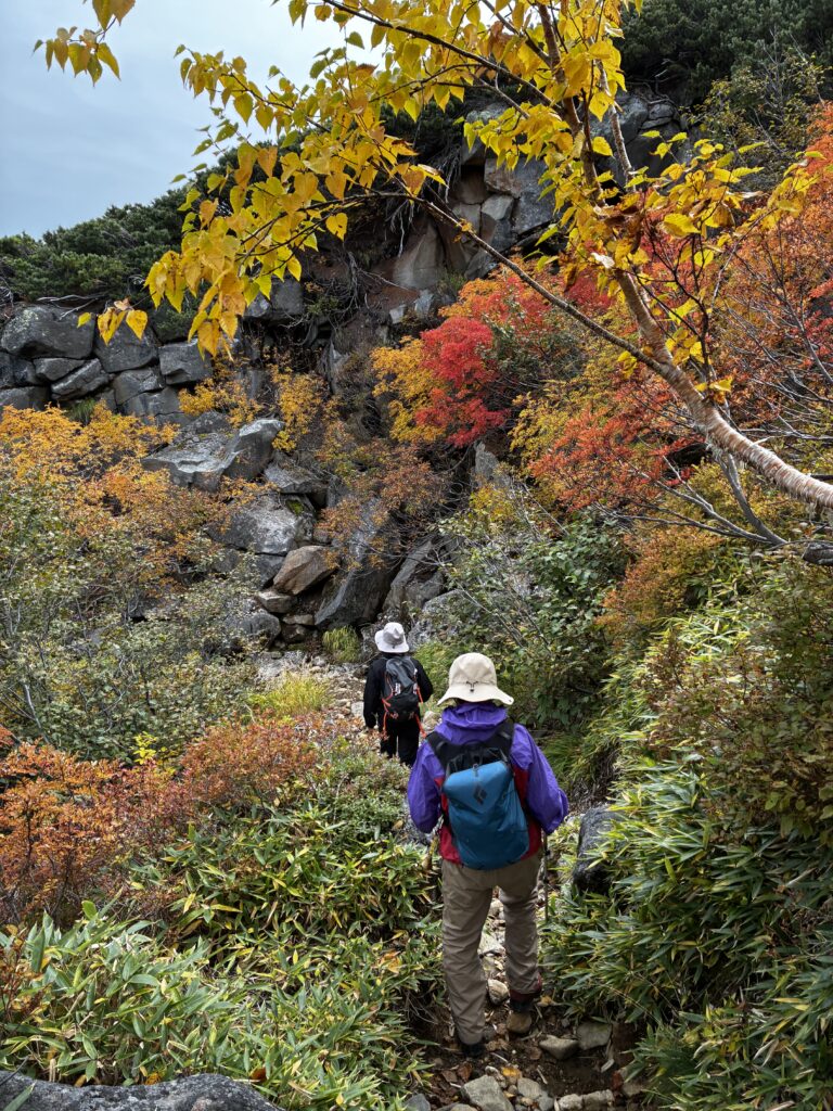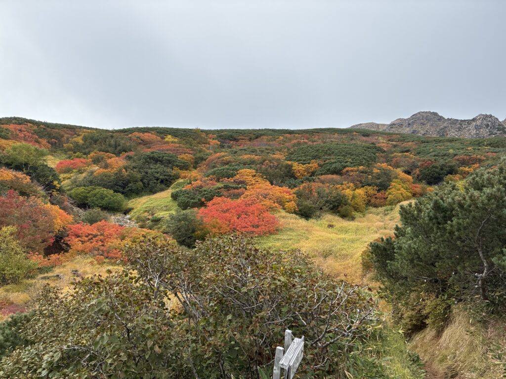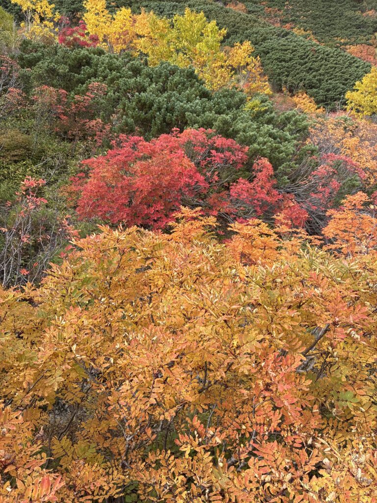 御嶽山紅葉リサーチしてきました。8合目小屋から三の池トラバースルートを半分ほどピストン。なかなか見事でした。今週がピークと思われます。そろそろ霜も降りそうなので、以降の紅葉は里に降りてきます。#木曽町 #開田高原#ロッジ上天気 #御嶽山 #木曽 #御嶽登山