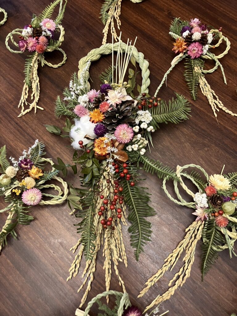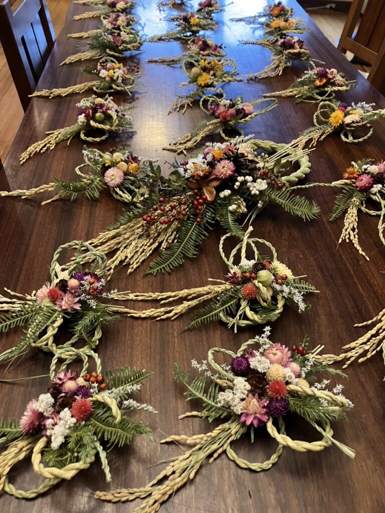 愛知から今年も届きました。テーブル一面のしめ縄リース。開田に花やグリーンを採りにみえて、手作りされたものです。年末からご宿泊の方にお配りします。また一年健やかでありますように。京子 #木曽町 #開田高原 #ロッジ上天気 #御嶽山 #木曽 #御嶽登山 #開田高原マイアスキー場 #木曽福島スキー場 #御嶽スキー場 #手作りリース #しめ縄リース