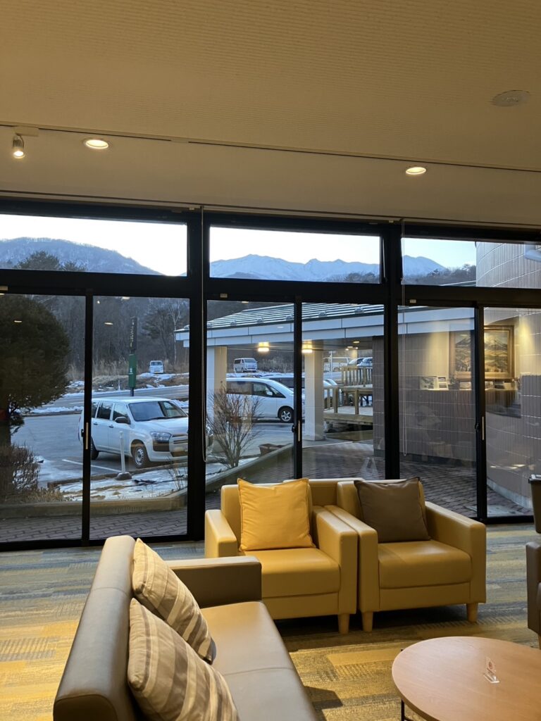 施設は新しく清潔で、浴室に向かう通路からも御嶽山が望めます。