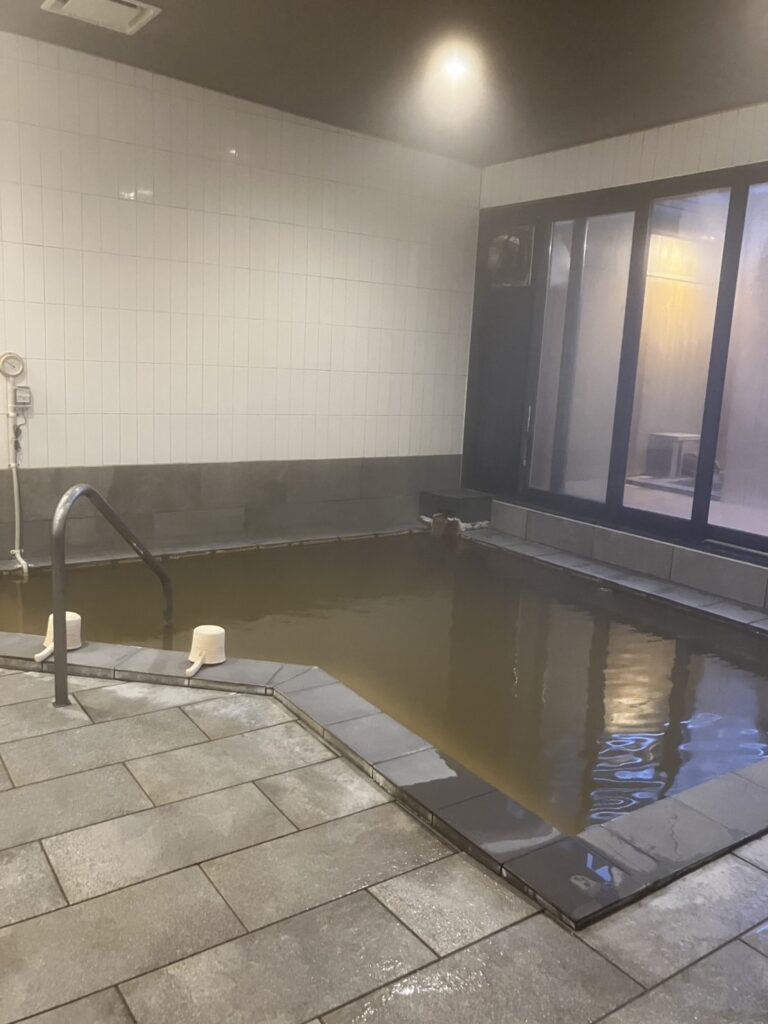 浴室は洗い場に仕切りがあって安心できます。お湯は薄い茶褐色、この色から黄金の名前の由来があります。