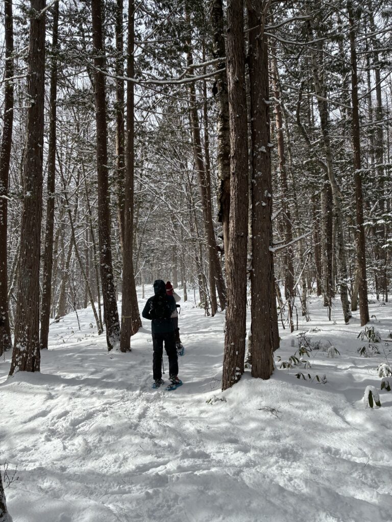 尾の島の滝へスノーシューに行ってきました。終始マイナス10℃という厳しい冷え込みでしたが、予報より風は比較的穏やかで、時折太陽も顔を出して、明るい森でした。