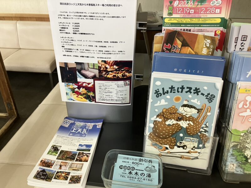 木曽福島スキー場へ行ってきました、、が、今回滑りはお預け。目的はロッジ上天気の営業です。リーフレットとご案内ポスターを持参してお願いしたところ、なんとすぐにセンターハウス入口正面の“特等席”に置いてい …